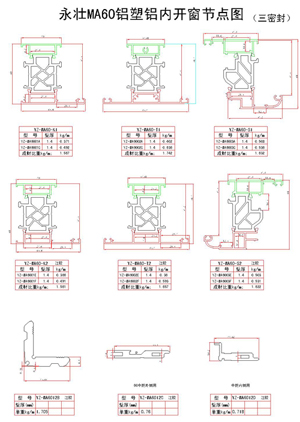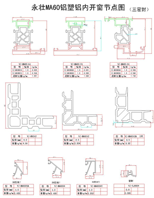 YZ-MA60鋁塑鋁內開窗節點圖(一)