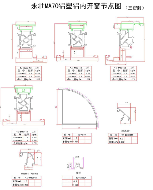 永壯MA70鋁塑鋁內開窗節點圖(一)